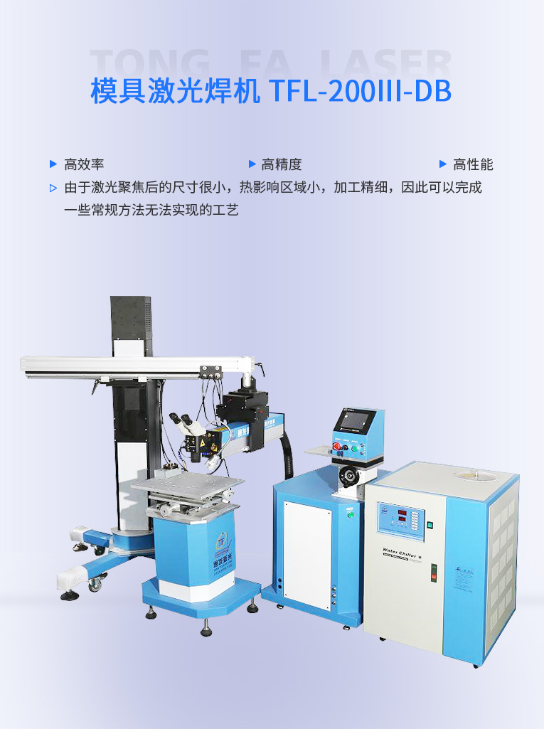 銀寶山新科技引進通發(fā)激光TFL-200III-DB模具激光焊機主要用于大型汽車模具的激光補焊,汽車配件塑料模具激光焊補,汽車內(nèi)飾模具激光燒焊,汽車保險杠塑膠金型激光修復。