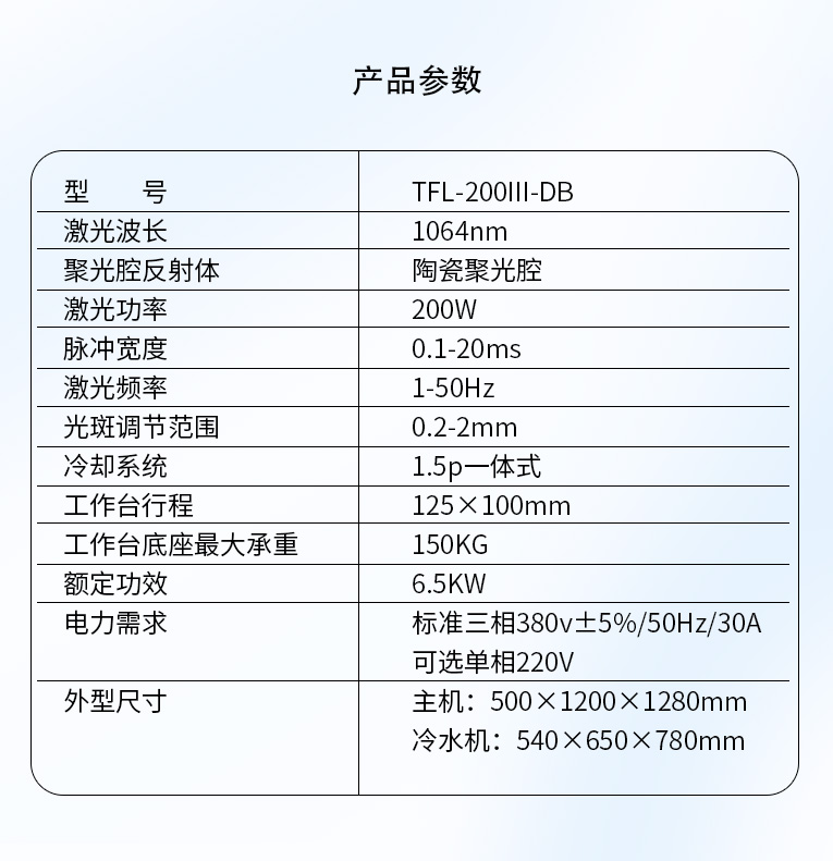 TFL-200Ⅲ-DB型模具激光焊機是通發(fā)激光公司在TFL-180Ⅲ的基礎進行了改良,采用通發(fā)自主研發(fā)的二代精密單燈電源為燈泵浦驅(qū)動電源,操作更方便。主機具備激光頭手搖升降與工作臺按鈕電動升降實現(xiàn)焊接不同厚度模具的激光焊加工。本款機型更適用于各類高精密注塑模具激光補焊,精密塑膠模具零件激光修補,塑膠模具鈹銅零件激光燒焊;可對模具使用過程中出現(xiàn)的磨損進行激光修復;對機械加工失誤、電火花加工失誤,模具減膠設計變更等需要對模具修改,起到關鍵的作用,可彌補應加工失誤造成的巨大損失。