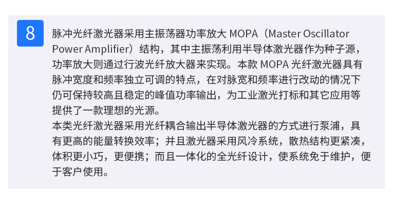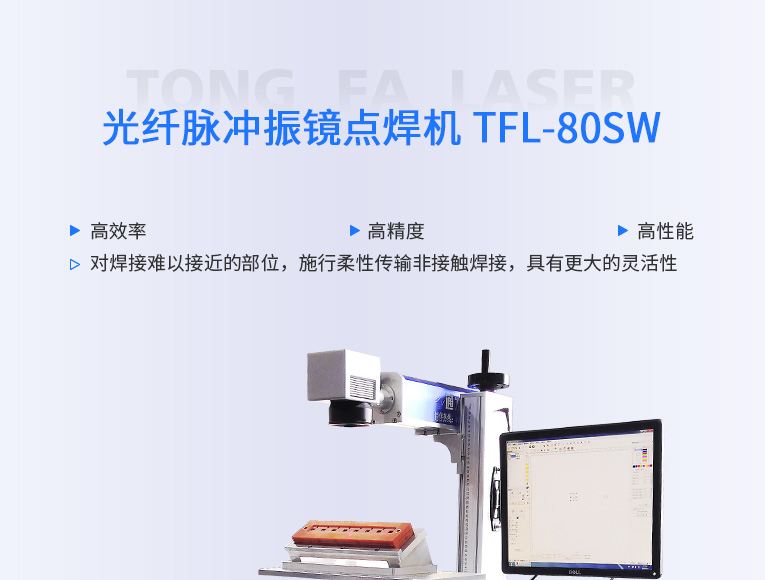 通發(fā)激光TFL-80SW振鏡激光焊接機,采用主振蕩器功率放大 MOPA(Masrer Qscillator Power Amplifier)結(jié)構(gòu),實現(xiàn)脈沖寬度和頻率獨立可調(diào)的特點,在對脈寬和頻率進行改動的情況下仍保持較高且穩(wěn)定的峰值功率輸出,適用于電池、小五金等多個行業(yè)的激光打標(biāo)、激光焊接應(yīng)用。